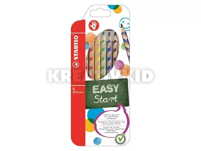 Színes ceruza készlet, háromszögletű, jobbkezes, STABILO "EasyColours", 6 különböző szín