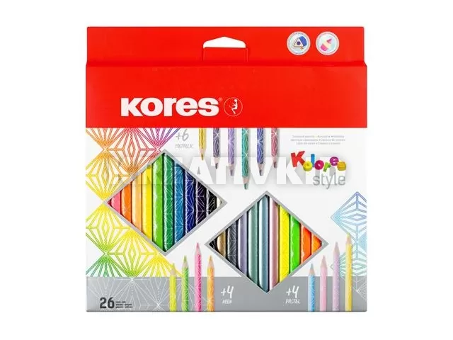 Színes ceruza készlet, háromszögletű, KORES "Kolores Style", 26 különböző szín
