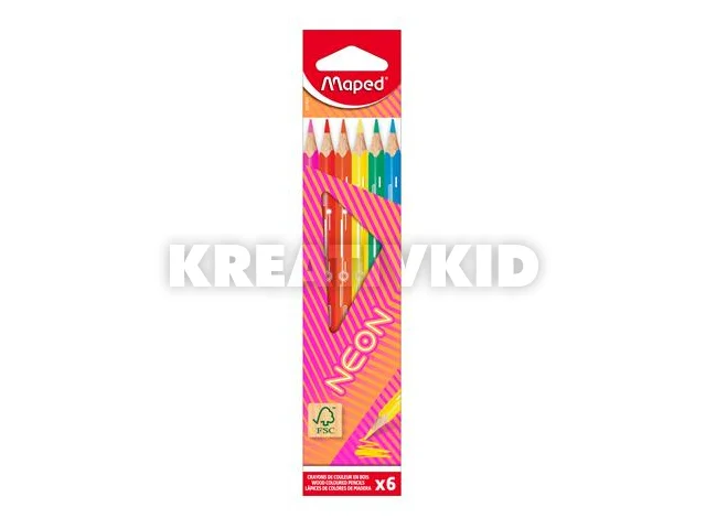 Színes ceruza készlet, háromszögletű, MAPED "Neon", 6 különböző szín
