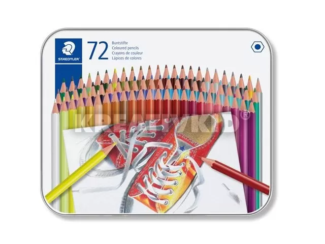 Színes ceruza készlet, hatszögletű, fém dobozban, STAEDTLER, 72 különböző szín