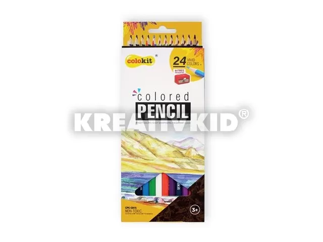 Színes ceruza készlet, hatszögletű, hegyezővel, COLOKIT, 24 különböző szín
