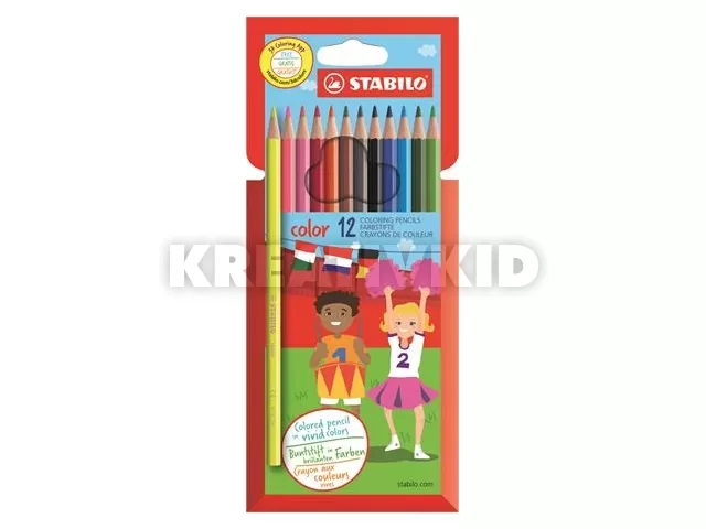Színes ceruza készlet, hatszögletű, STABILO "Color", 12 különböző szín