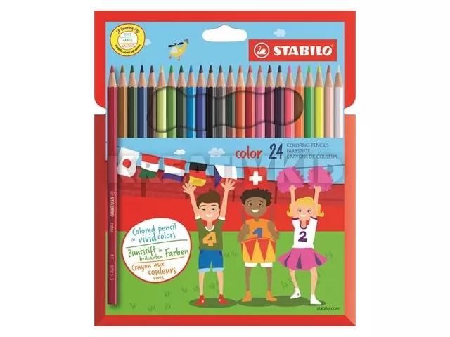 Színes ceruza készlet, hatszögletű, STABILO "Color", 24 különböző szín