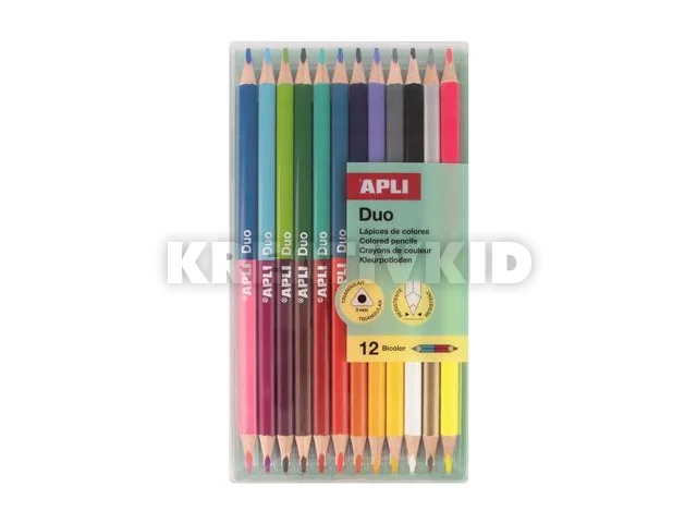 Színes ceruza készlet, kétvégű, háromszögletű, APLI "Duo", 24 különböző szín