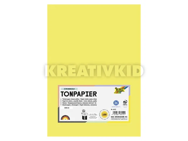 Színes papír, A4, 130 g, 100 lap, FOLIA, citromsárga