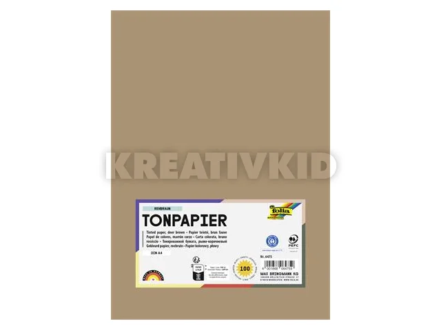 Színes papír, A4, 130 g, 100 lap, FOLIA, őzbarna