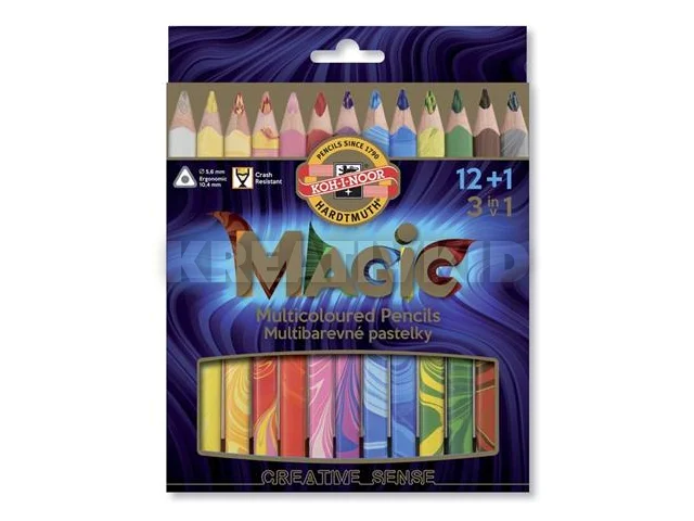 Színes varázsceruza készlet, háromszögletű, KOH-I-NOOR "Magic 3408", 12+1 különböző szín