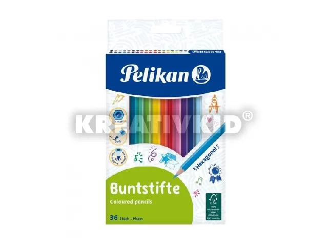 Kiváló minőségű színes ceruza/ 36 szín, hatszögletű lakkozott fatest, intenzív színek, lágyan kenődik, 17,5 cm-es ceruzahossz.