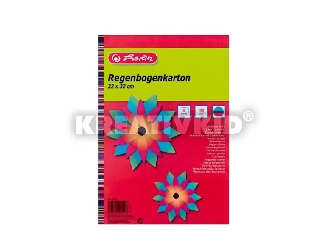 Szivárványkarton, mindkét oldalán színes, ideális kreatív alkotások készítéséhez. 180 g/m2, mérete: 22 x 32 cm, két különféle színátmenetes karton, színenként 5-5 db/csomag.