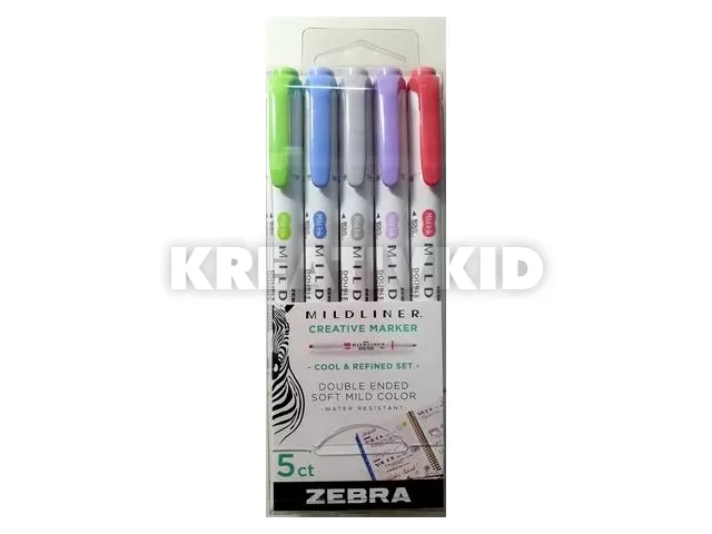 Szövegkiemelő készlet, 1,0/3,5 mm, kétvégű ZEBRA "Mildliner Cool & Refined" 5 szín