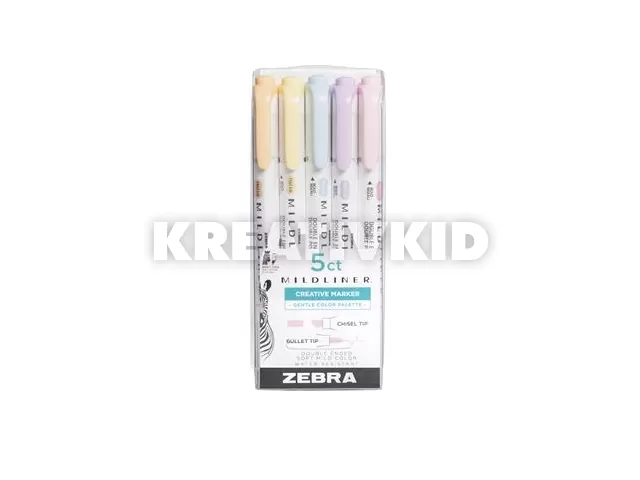 Szövegkiemelő készlet, 1,4/4 mm, kétvégű, ZEBRA "Mildliner Highlighter Gentle", 5 különböző szín