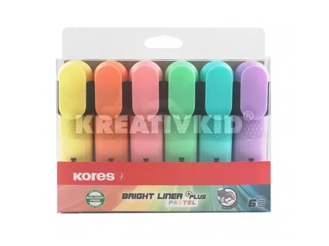 Szövegkiemelő készlet, 0,5-5 mm, KORES "Bright Liner Plus Pastel", 6 különböző szín
