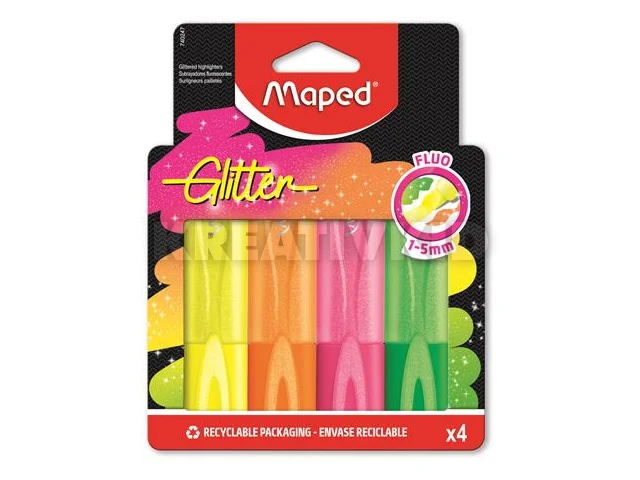 Szövegkiemelő készlet, 1-5 mm, MAPED "Glitter Fluo Peps", vegyes fluoreszkáló színek