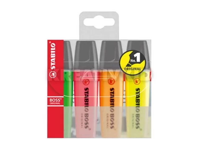 Szövegkiemelő készlet, 2-5 mm, STABILO "BOSS original", 4 különböző szín
