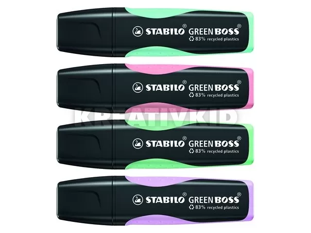 Szövegkiemelő készlet, 2-5 mm, STABILO "Green Boss Pastel", 4 különböző szín
