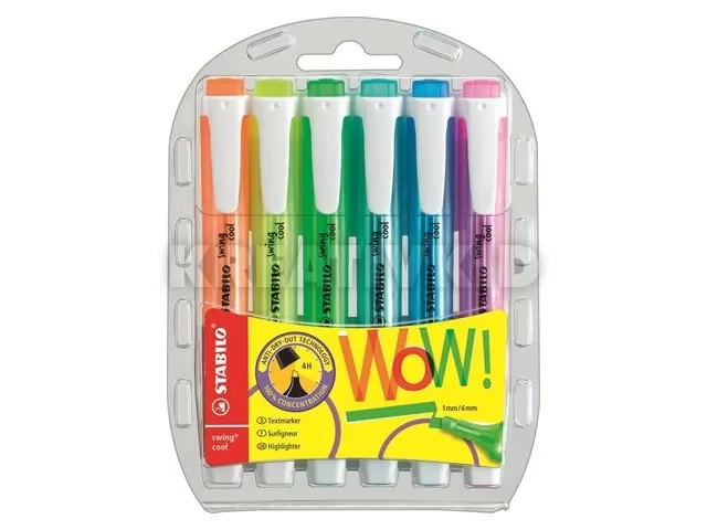 Szövegkiemelő készlet, 1-4 mm, STABILO "Swing Cool", 6 különböző szín