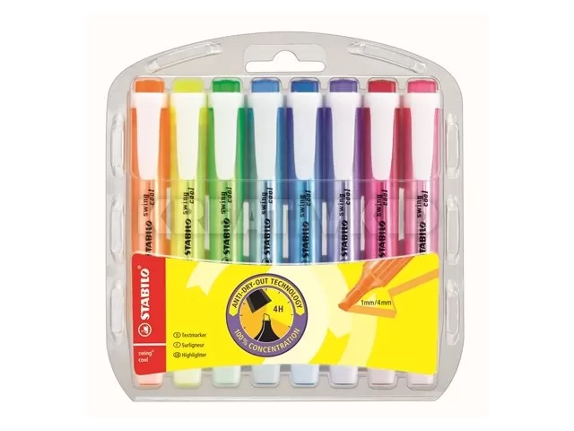 Szövegkiemelő készlet, 1-4 mm, STABILO "Swing Cool", 8 különböző szín