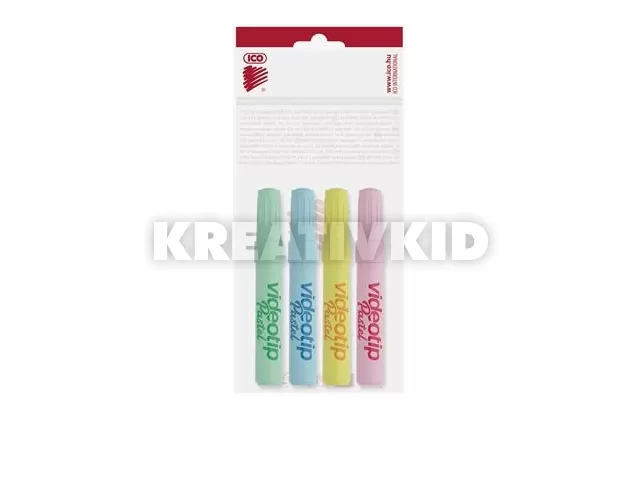 Szövegkiemelő készlet, 1-4 mm, ICO "Videotip", 4 különböző pasztell szín