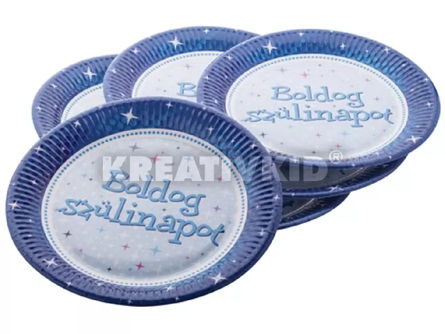 Kék Boldog Születésnapot feliratos tányér - 23 cm, 6 db / csomag