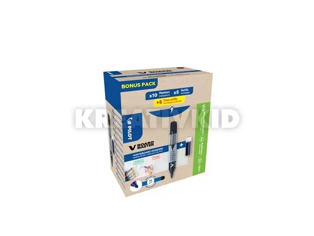 Táblamarker, 2,3 mm, kúpos, PILOT "V-Board Master, Bonus Pack", fekete + betét