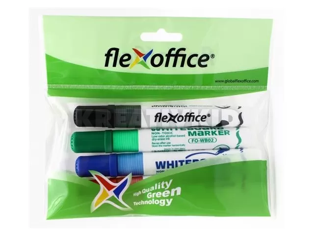 Táblamarker, 2,5 mm, kúpos, szett, FLEXOFFICE "WB02", 4 szín