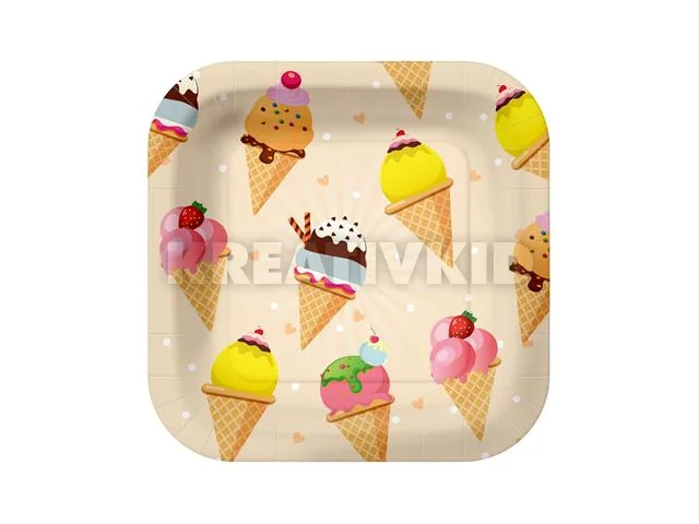 Tányér, papír, 23 cm, fagyi minta
