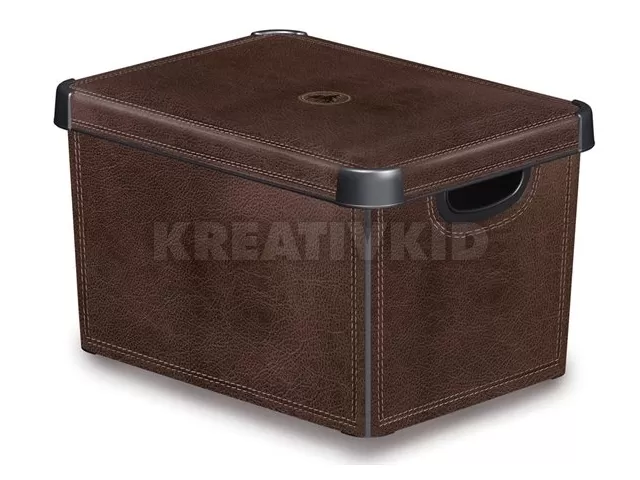 Tárolódoboz, tetővel, 22 l, bőrhatású, CURVER " Deco L