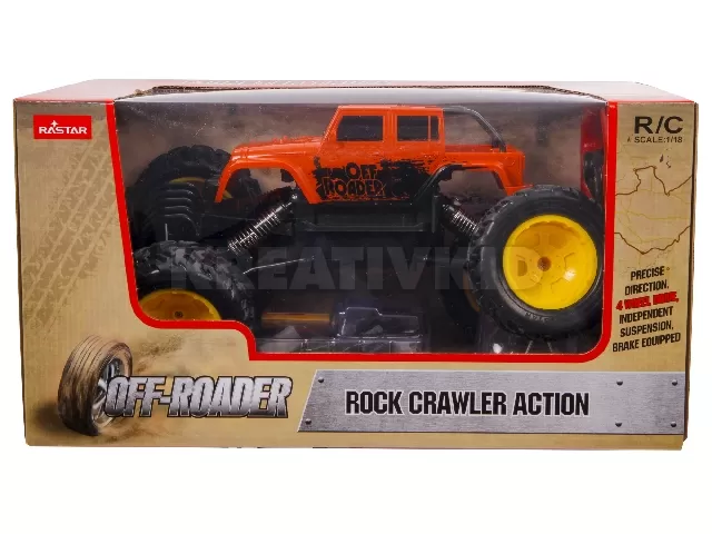 Nagy méretű terepjáró, hatalmas kerekekkel és távirányítóval! Az 1:18 méretarányú Rastar Távirányítós Rock Crawler Action egy műanyag karosszériával készült terepjáró autó, rugós felfüggesztéssel. A terepjáró minden irányba tud haladni, a villanymotor minden kereket meghajt, az autó a legnehezebb terepviszonyokat is könnyen veszi! A Távirányítós Rock Crawler Action távirányítója kormány alakú, a távirányító 1 db 9V-os elemmel, az autó 6 db AA ceruzaelemmel működik, a csomagolás csak a ceruzaelemeket tartalmazza. Méretek: 32 x 21 x 15 cm.