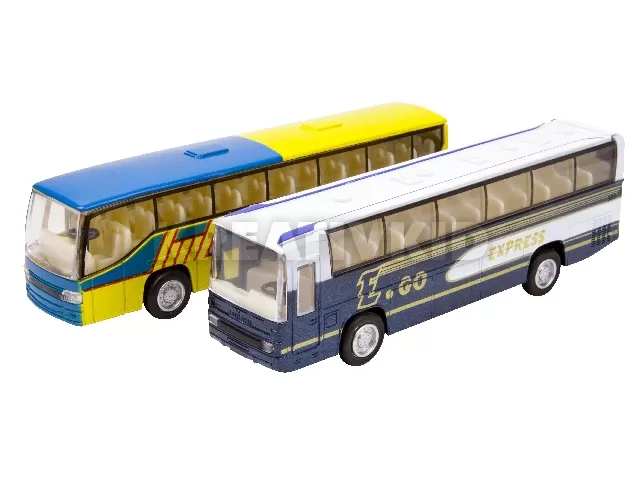 Szállítsd az utasokat a fém busszal! A távolsági busz egy fémből és műanyagból készült szállítójármű, amit hosszú utakra terveztek. A busz felhúzós meghajtással készült. Méret: 18 cm.