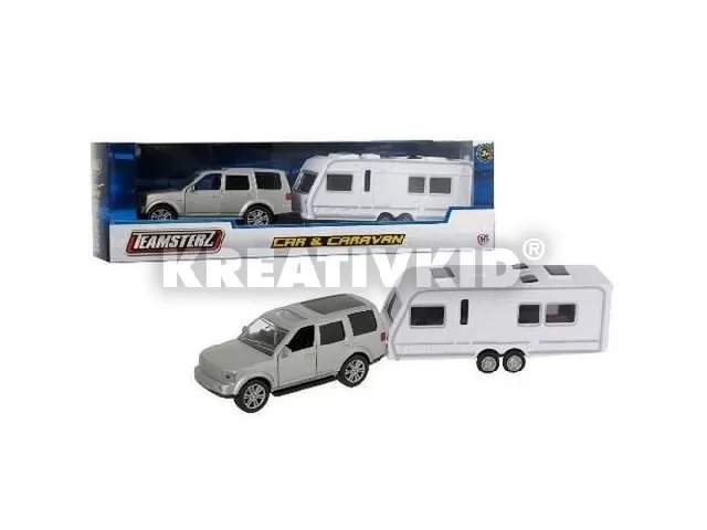 Unod már a városi nyüzsgést? Csatold fel a több személyes lakókocsidat a 4X4 meghajtású terepjáródra és irány a természet. Az összkerék meghajtású járgányod bármilyen tereppel megbirkózik, ha pedig megtaláltad a neked ideális helyet, akkor csak parkolj le és élvezd a nyugalmat. Napközben kicsit körül nézhetsz a csodás környéken, este pedig megcsinálhatod a finom vacsit a lakókocsid konyhájában, majd nyugovóra térhetsz a kényelmes ágyadban. A minőségi Teamsterz játékok fémből és műanyagból készültek, időt állók.