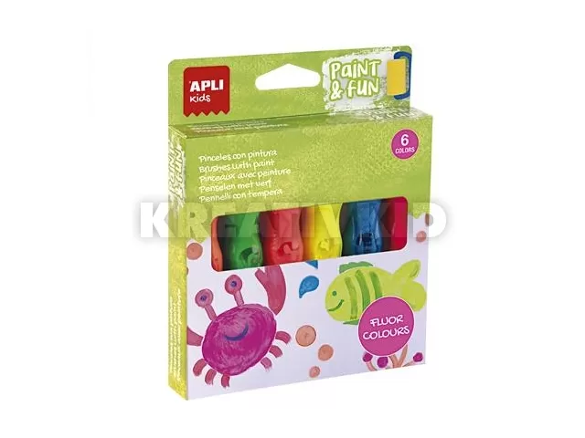 Tempera készlet, ecsetvégű tubusban, APLI Kids "Paint&Fun", 6 különböző neon szín