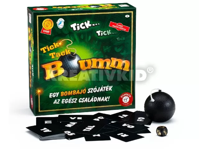 A Tick... Tack... Bumm egy izgalmas és gyorsan pergõ logikai és kommunikációs játék. A játékosok elindítják a Tick... Tack... Bumm-ot. Vajon meddig ketyeg és kinek a kezében lesz éppen, mikor elhangzik a bumm? Valószínû annál a játékosnál lesz, aki nem tud elég gyorsan egy szót alkotni a felhúzott kártyán lévõ szótaggal, vagy nem adta elég gyorsan át a Tick... Tack... Bumm-ot. Kinek jár a leggyorsabban az esze és a keze?