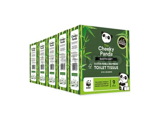 Toalettpapír, bambusz, 3 rétegű, kistekercses, 9 tekercs, CHEEKY PANDA, fehér
