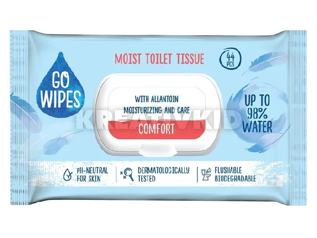 Toalettpapír, nedves, visszazárható tetővel, 44 db, GO WIPES