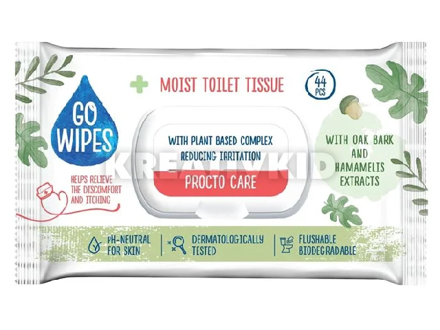 Toalettpapír, nedves, visszazárható tetővel, 44 db, GO WIPES "Procto Care"