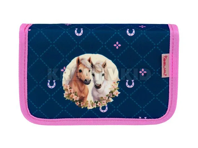 Tolltartó, klapnis, cipzáras, BELMIL "Meet your Horses", kék-rózsaszín, lovak