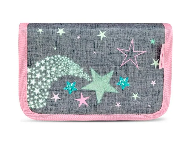 Tolltartó, klapnis, cipzáras, BELMIL "Shine Bright", szürke-rózsaszín, csillagok
