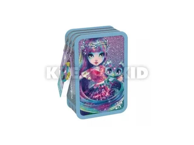 1 db 3 rekeszes tolltartó, 18 filctoll, 18 színes ceruza, radír, vonalzó, hegyező, 4 színű golyóstoll, grafit ceruza, olló, ragasztó, jegyzetlapok.