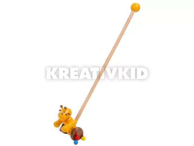 Sétáltasd meg hosszú nyakú kedvencedet! A zsiráfos Fa tolóka kerekei mókás kis zörejt hallat. Fogd hát kezedbe a bot véget, és ha már biztonságosan tudsz járni, kezd el tolni magad előtt, és figyeld, ahogy a növényevő jószágod mozog! A Fa tolóka zsiráffal termékének méretei: 13 x 10 x 54 cm. A játékot 1 éves kortól ajánljuk.