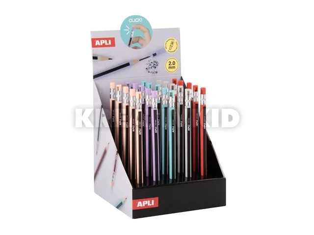 Töltőceruza display, mechanikus, 2 mm, hegyezővel, ceruzahatású, APLI, vegyes színekben, 25 db