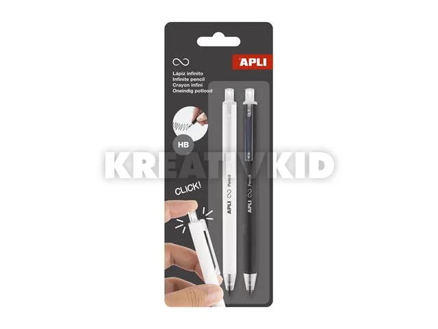 Töltőceruza, HB, nyomógombos, APLI "Infinite Click", fehér és fekete