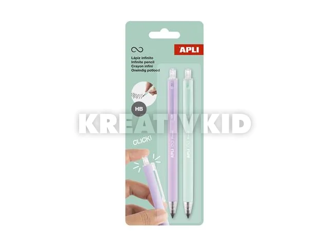 Töltőceruza, HB, nyomógombos, APLI "Infinite Click", lila és zöld