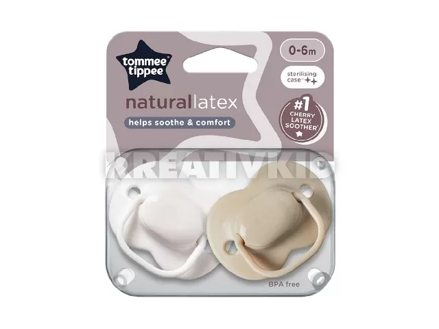 A természetes választás. 100%-ban természetes úton elõállított latexbõl készült, amely gyengéd a baba érzékeny bõréhez. Tradicionális, rugalmas és harapásbiztos kerek cumifejjel. Szimmetrikus cseresznye alakú 100%-ban természetes úton elõállított latex cumifej. Ívelt pajzs a kényelmes illeszkedésért. Újra felhasználható sterilizáló tok. BPA-mentes.