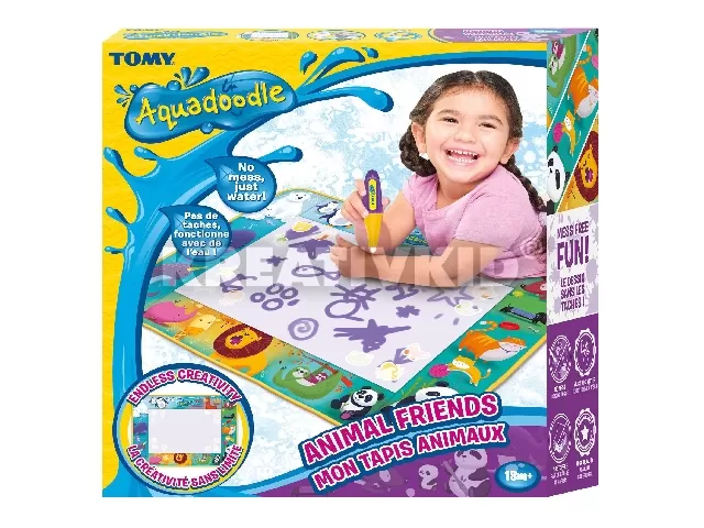 Az Aquadoodle garantáltan elvarázsolja a kis művészeket! A dobozban található speciális tollat csak fel kell tölteni vízzel, és a kicsik már kezdhetik is az alkotást a szőnyegen. Víz hatására az előre megrajzolt állatok előbújnak, majd amikor megszárad a szőnyeg, eltűnnek. Az állatok szerelmesei egészen biztosan órákon keresztül alkotnak majd a szőnyeg segítségével.