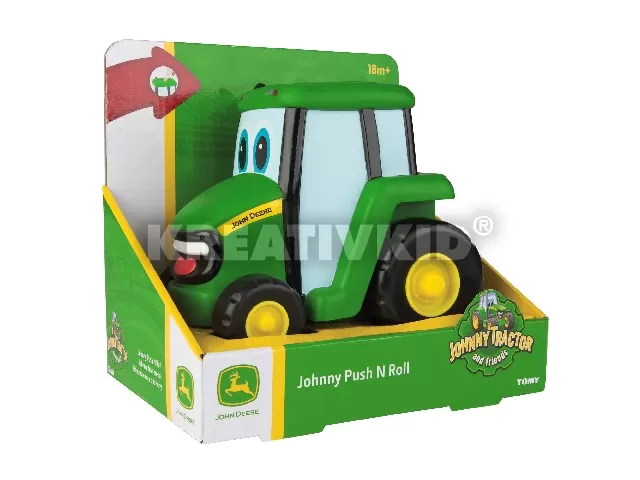 A Tomy márkájú, eredeti John Deere traktorokról mintázott Johnny traktor biztonságos szórakozást kínál a legkisebb gyermekek számára is, hála lekerekített széleinek és puha felületének. A traktorral a gyermek maga is játszhat kedvére, de ha megnyomjuk a tetején található gombot, ahogy neve is mutatja – a Johnny traktor magától gurul. Már 1,5 éves kortól, akár járás előtt is játszhat vele a gyermek, hiszen a mozgó, guruló játék arra ösztönözi a kicsit, hogy a traktor után másszon vagy akár már sétáljon. A kedves kis figura könnyedén gyermeke játszótársa lesz, biztonságosan és szórakoztatóan.