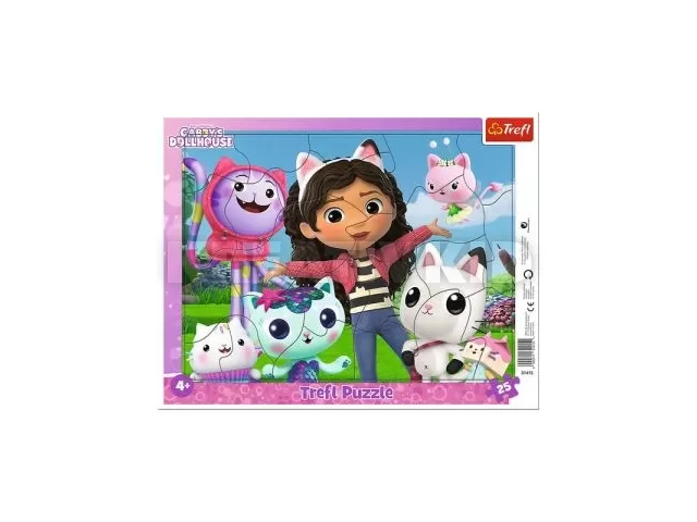 A gyerekek egy cuki Gabi babaháza témájú képet rakhatnak ezzel a keretes kirakóval. A változatos formájú darabok a kicsi kezekre lettek tervezve, kiváló minőségűek és tökéletesen illeszkednek.