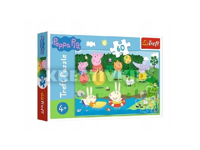 Peppa Malac és barátai egy 60 db-os kirakóson köszön vissza a gyerekek nagy örömére.A kirakott kép mérete: 33 × 22 cm