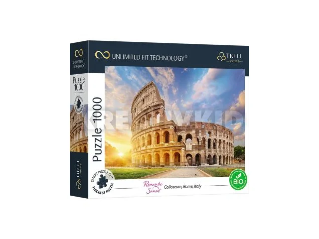 Prémium minőségű, 1000 darabos puzzle, amely a római Kolosszeumot ábrázolja. A vastag anyagból, különleges vágási módszerrel készült elemek tökéletesen illeszkednek egymáshoz, ennek köszönhetően könnyedén mozgatható a teljes puzzle egyben.