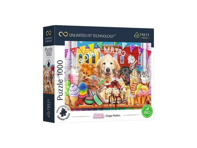 Prémium minőségű, 1000 darabos puzzle, amely cuki kutyákat és finomságokat ábrázol. A vastag anyagból, különleges vágási módszerrel készült elemek tökéletesen illeszkednek egymáshoz, ennek köszönhetően könnyedén mozgatható a teljes puzzle egyben.A Trefl Prime kirakók különlegessége, hogy az azonos méretű kirakókat egyszerűen montázzsá is lehet alakítani, így mindenki létrehozhatja a saját ízlése szerinti képet a nappali falára.A dobozon lévő fóliamatricák biológiailag lebomló műanyagból készültek, valamint a termékek nincsenek műanyagba csomagolva, így remek választás a globálisan gondolkodó, környezettudatos játékosok részére.A kirakott kép mérete: 85 x 58 cm
