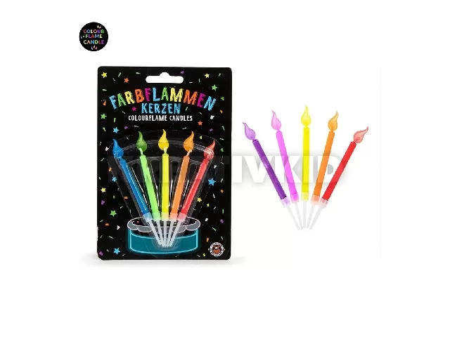 TRENDHAUS, BIRTHDAY FUN, SZÍNES LÁNGÚ GYERTYA, 2 FÉLE, 5 DB-OS